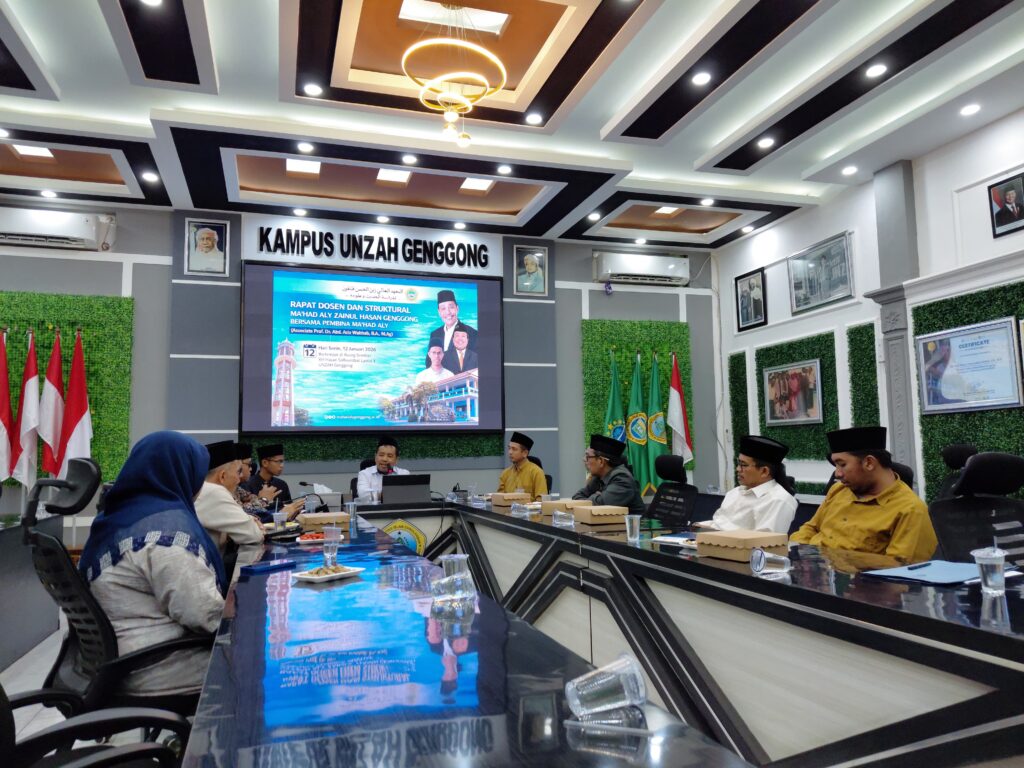 Probolinggo 12 Januari 2026 – Ma’had Aly Pondok Pesantren Zainul Hasan Genggong menggelar rapat dosen yang dihadiri oleh Pembina Ma’had Aly, Mudir Ma’had Aly, seluruh dosen, serta seluruh jajaran struktural Ma’had Aly. Rapat tersebut dilaksanakan sebagai forum strategis untuk membahas arah dan masa depan pengembangan Ma’had Aly ke depan.