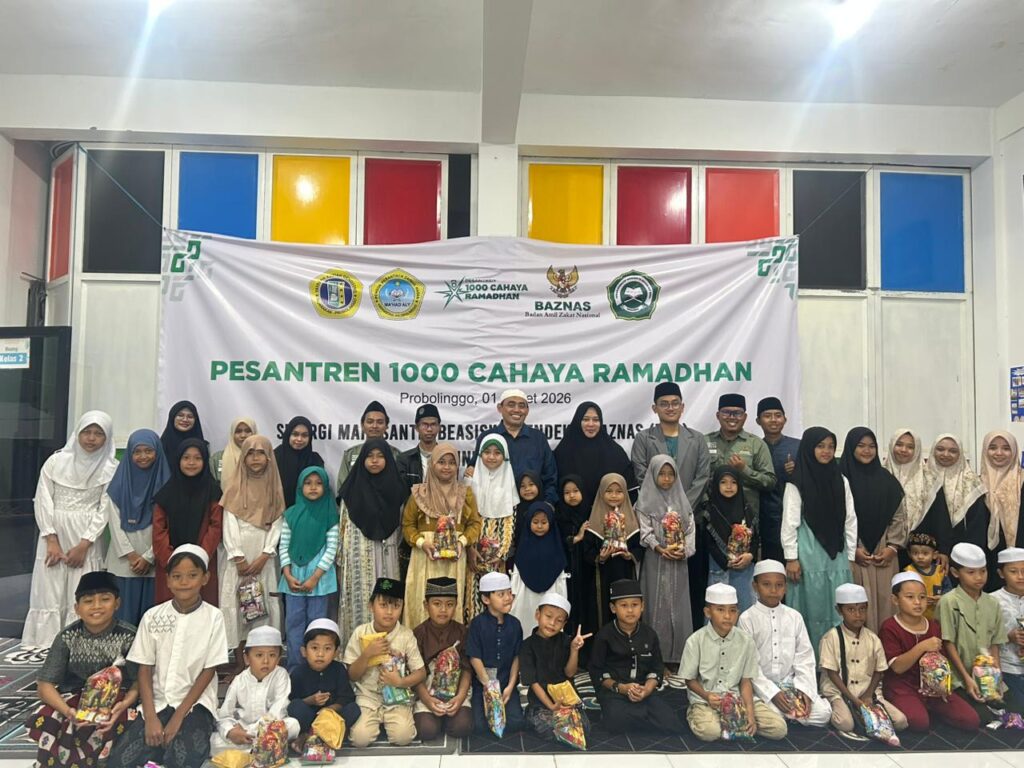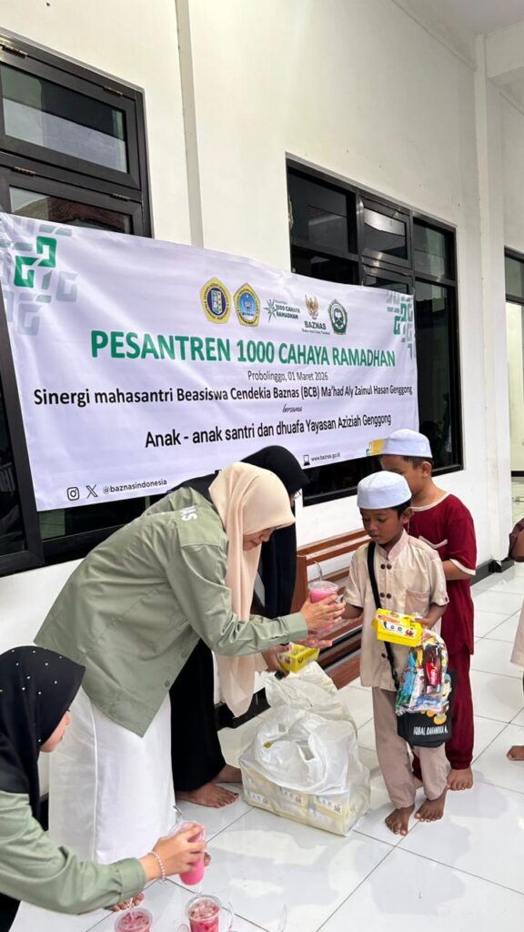 Badan Amil Zakat Nasional (BAZNAS) berkolaborasi dengan Ma’had Aly Zainul Hasan Genggong dan Yayasan Aziziah Genggong dalam menyukseskan program 1000 Cahaya Ramadhan yang digelar pada Sabtu, 1 Maret 2026.